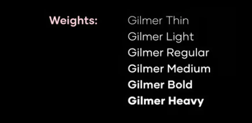 Gilmer is a fresh and geometric sans-serif typeface inspired by iconic fonts like Futura and Avant Garde. It features a high x-height, sharp edges, geometric letterforms, and minimal stroke contrast, similar to neo-grotesque typefaces of the 20th century.