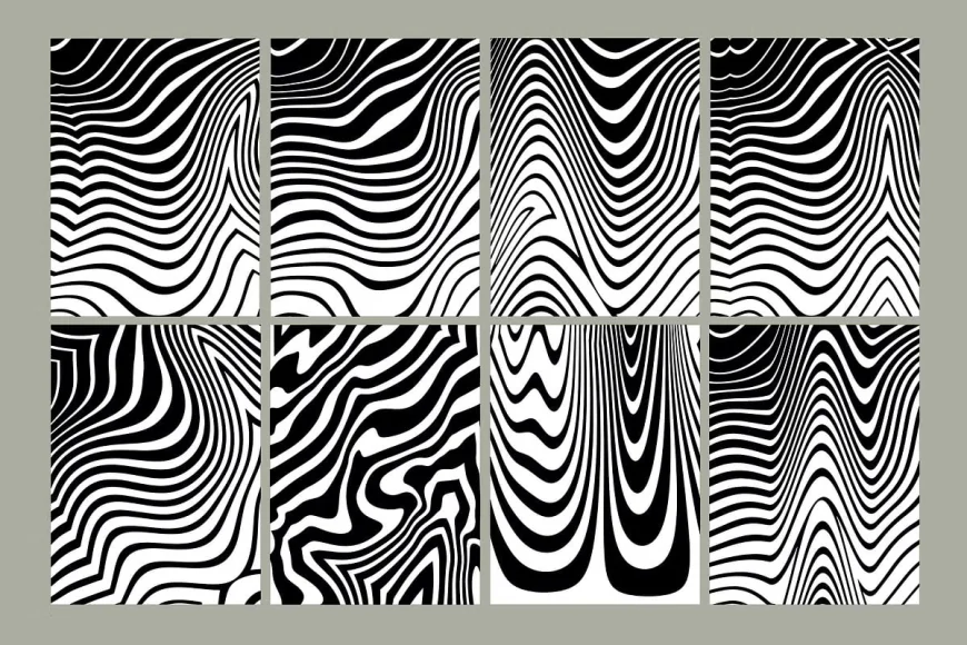 Dive into a world of retro-inspired abstraction with this collection of black and white wavy textures, influenced by the bold and fluid aesthetics of the 1970s. These high-contrast patterns evoke a sense of movement, rhythm, and psychedelic energy, perfect for adding a vintage yet modern touch to your designs.