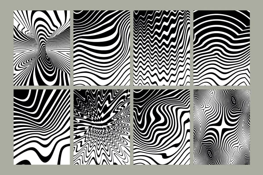Dive into a world of retro-inspired abstraction with this collection of black and white wavy textures.