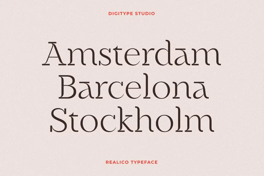 Realico is a meticulously crafted serif display font that adds a distinctive touch to your text. It is ideal for titles, logos, and formal designs such as t-shirts, labels, magazines, books, greeting cards, packaging, fashion, makeup, stationery, novels, and various advertising purposes.